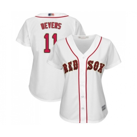 >Women's Boston Red Sox #11 Rafael Devers Authentic White 2019 Gold Program Cool Base Baseball Jersey