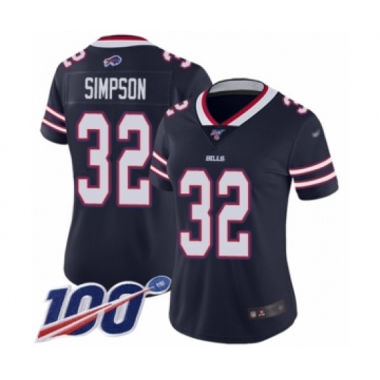 >Women's Buffalo Bills #32 O. J. Simpson Limited Navy Blue Inverted Legend 100th Season Football Jersey