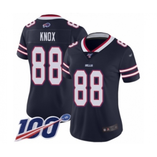 >Women's Buffalo Bills #88 Dawson Knox Limited Navy Blue Inverted Legend 100th Season Football Jersey
