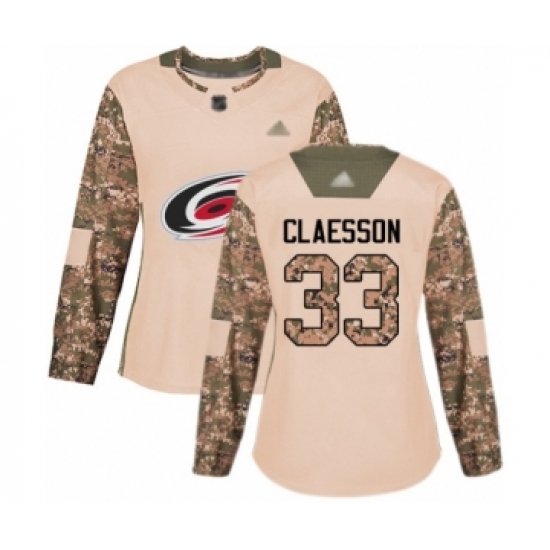>Women's Carolina Hurricanes #33 Fredrik Claesson Authentic Camo Veterans Day Practice Hockey Jersey