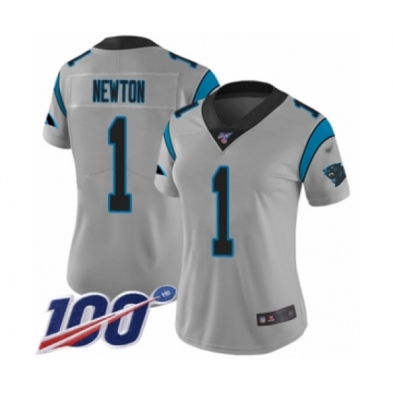 Women's Carolina Panthers #1 Cam Newton Silver Inverted Legend Limited 100th Season Football Jersey