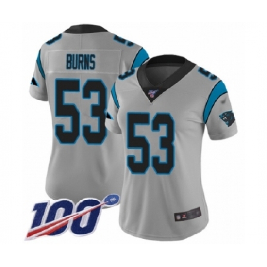 Women's Carolina Panthers #53 Brian Burns Silver Inverted Legend Limited 100th Season Football Jersey