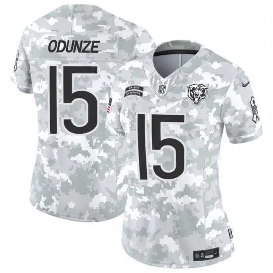 >Women's Chicago Bears #15 Rome Odunze 2024 F.U.S.E Arctic Camo Salute To Service Limited Stitched Football Jersey(Run Small)