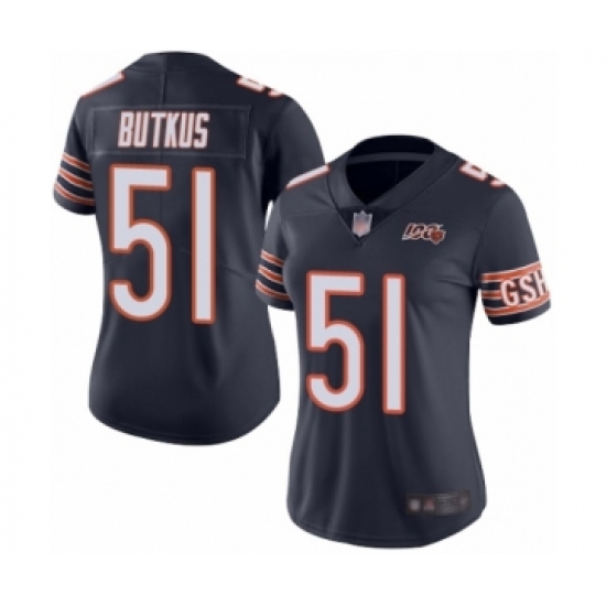 Women's Chicago Bears #51 Dick Butkus Navy Blue Team Color 100th Season Limited Football Jersey