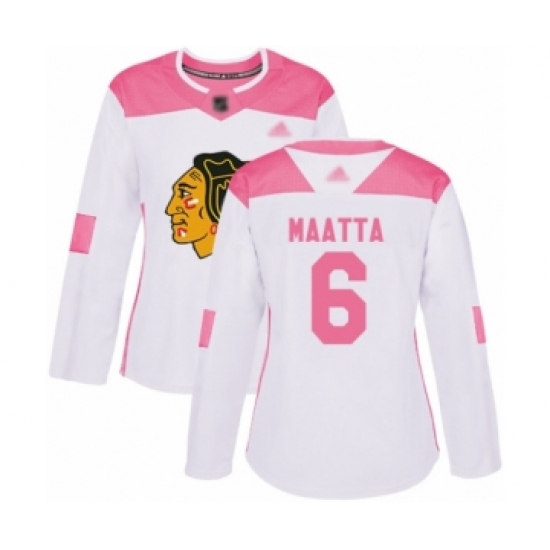 >Women's Chicago Blackhawks #6 Olli Maatta Authentic White Pink Fashion Hockey Jersey