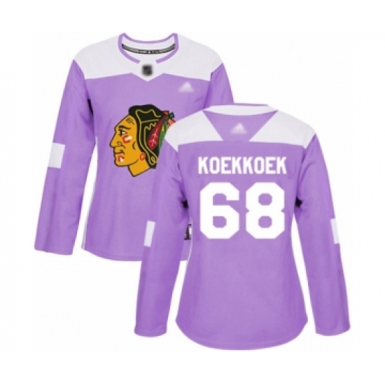 >Women's Chicago Blackhawks #68 Slater Koekkoek Authentic Purple Fights Cancer Practice Hockey Jersey