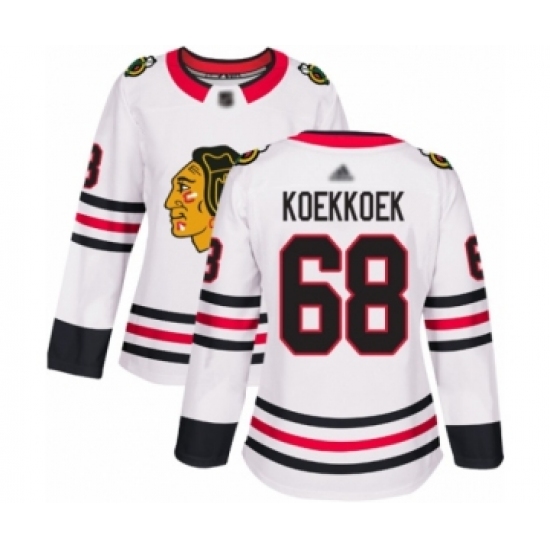 Women's Chicago Blackhawks #68 Slater Koekkoek Authentic White Away Hockey Jersey