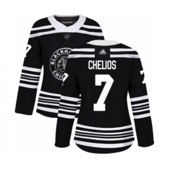 >Women's Chicago Blackhawks #7 Chris Chelios Authentic Black Alternate Hockey Jersey