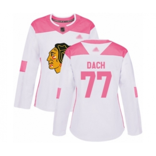 Women's Chicago Blackhawks #77 Kirby Dach Authentic White Pink Fashion Hockey Jersey