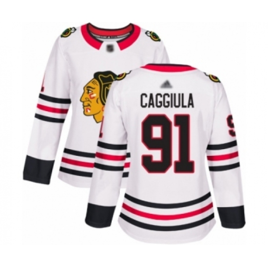 Women's Chicago Blackhawks #91 Drake Caggiula Authentic White Away Hockey Jersey