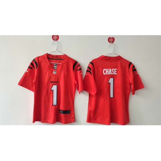 >Women's Cincinnati Bengals #1 Ja'Marr Chase Orange Vapor Football Stitched Jersey(Run Small)