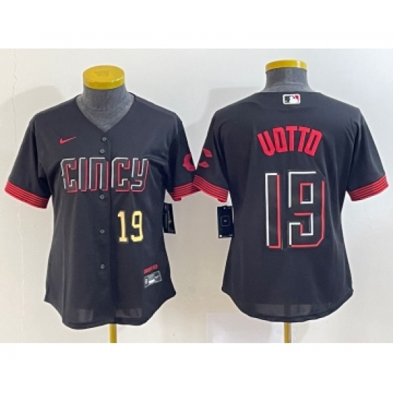 >Women's Cincinnati Reds #19 Joey Votto Number Black 2023 City Connect Cool Base Stitched Jersey