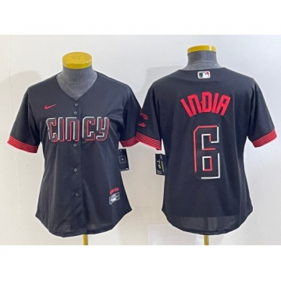 >Women's Cincinnati Reds #6 Jonathan India Black 2023 City Connect Cool Base Stitched Jersey 1
