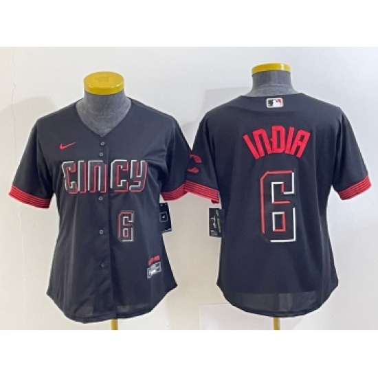 Women's Cincinnati Reds #6 Jonathan India Black 2023 City Connect Cool Base Stitched Jersey 1