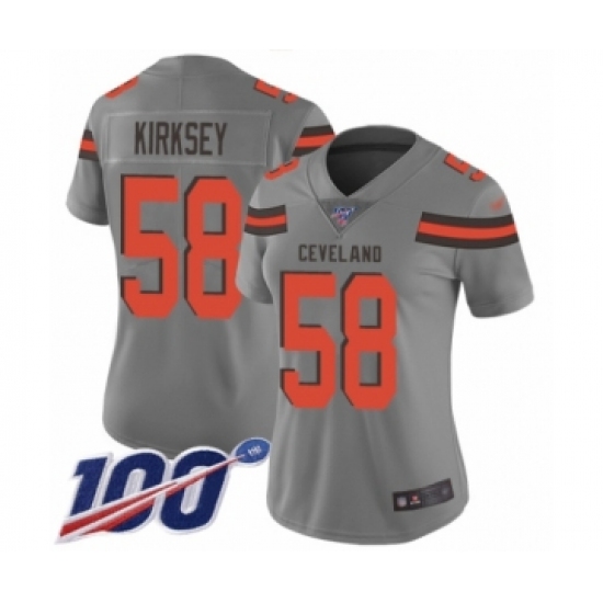 >Women's Cleveland Browns #58 Christian Kirksey Limited Gray Inverted Legend 100th Season Football Jersey