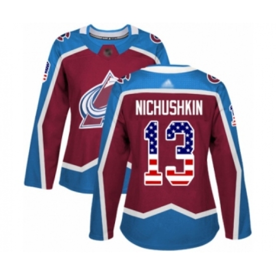 Women's Colorado Avalanche #13 Valeri Nichushkin Authentic Burgundy Red USA Flag Fashion Hockey Jersey