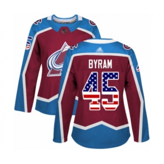Women's Colorado Avalanche #45 Bowen Byram Authentic Burgundy Red USA Flag Fashion Hockey Jersey