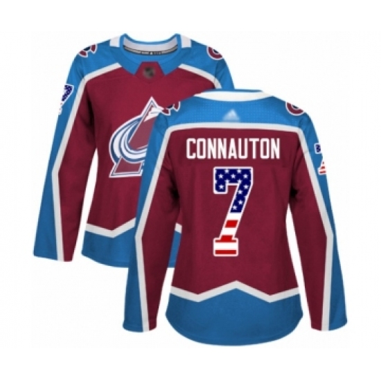 Women's Colorado Avalanche #7 Kevin Connauton Authentic Burgundy Red USA Flag Fashion Hockey Jersey