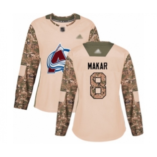 >Women's Colorado Avalanche #8 Cale Makar Authentic Camo Veterans Day Practice Hockey Jersey
