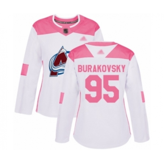 Women's Colorado Avalanche #95 Andre Burakovsky Authentic White Pink Fashion Hockey Jersey