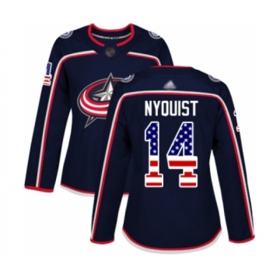>Women's Columbus Blue Jackets #14 Gustav Nyquist Authentic Navy Blue USA Flag Fashion Hockey Jersey
