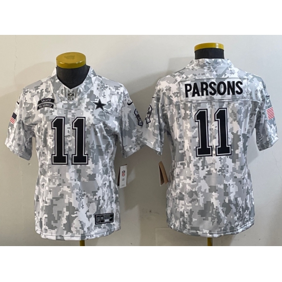 >Women's Dallas Cowboys #11 Micah Parsons 2024 FUSE Arctic Camo Salute to Service Limited Stitched Jersey