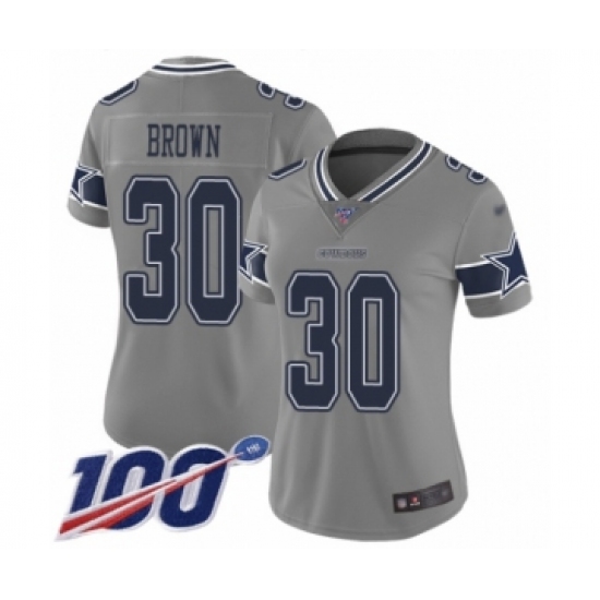 >Women's Dallas Cowboys #30 Anthony Brown Limited Gray Inverted Legend 100th Season Football Jersey