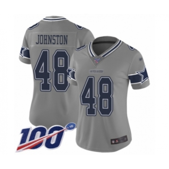 >Women's Dallas Cowboys #48 Daryl Johnston Limited Gray Inverted Legend 100th Season Football Jersey