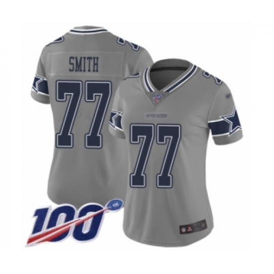 >Women's Dallas Cowboys #77 Tyron Smith Limited Gray Inverted Legend 100th Season Football Jersey