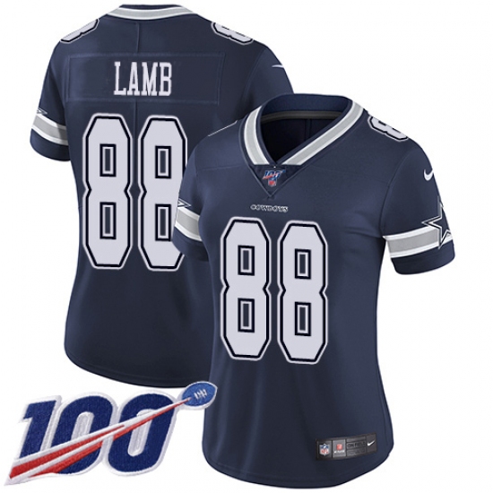 Women's Dallas Cowboys #88 CeeDee Lamb Navy Blue Team Color Stitched 100th Season Vapor Untouchable Limited Jersey