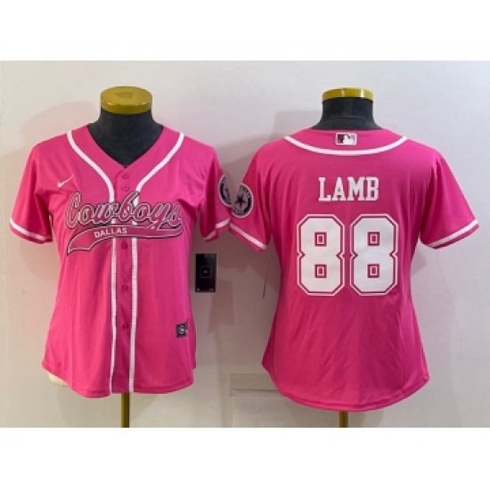 Women's Dallas Cowboys #88 CeeDee Lamb Pink With Patch Cool Base Stitched Baseball Jersey