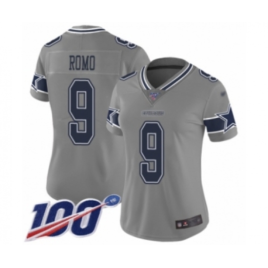 Women's Dallas Cowboys #9 Tony Romo Limited Gray Inverted Legend 100th Season Football Jersey