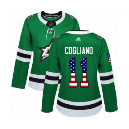 >Women's Dallas Stars #11 Andrew Cogliano Authentic Green USA Flag Fashion Hockey Jersey