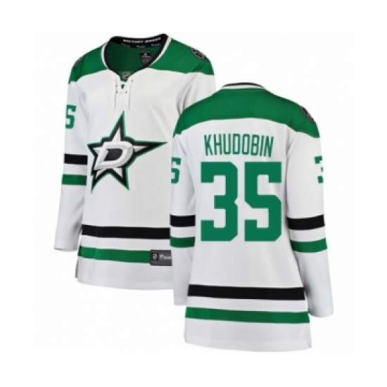 Women's Dallas Stars #35 Anton Khudobin Authentic White Away Fanatics Branded Breakaway NHL Jersey