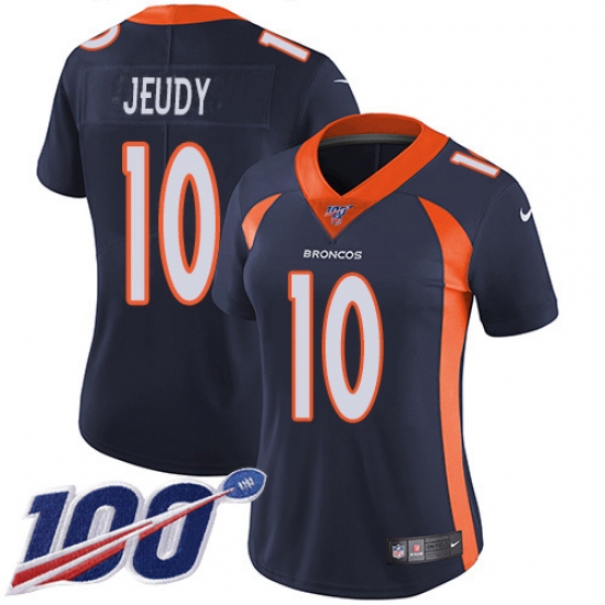 >Women's Denver Broncos #10 Jerry Jeudy Navy Blue Alternate Stitched 100th Season Vapor Untouchable Limited Jersey