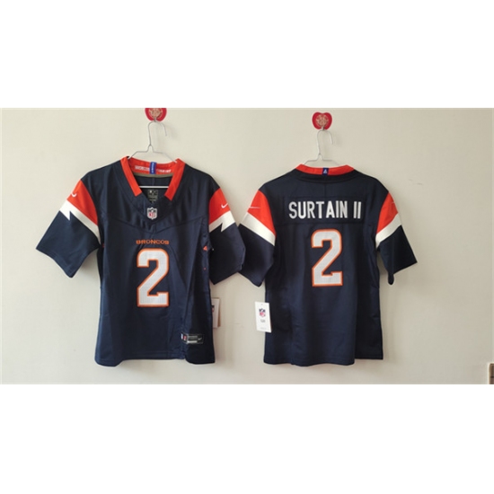 >Women's Denver Broncos #2 Pat Surtain II Navy 2024 F.U.S.E. Vapor Stitched Jersey(Run Small)