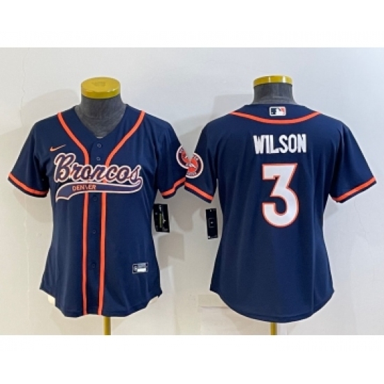Women's Denver Broncos #3 Russell Wilson Navy Blue With Patch Cool Base Stitched Baseball