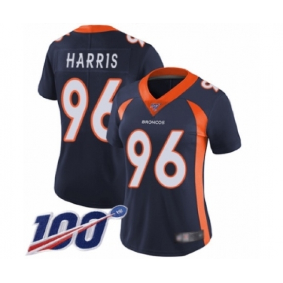 Women's Denver Broncos #96 Shelby Harris Navy Blue Alternate Vapor Untouchable Limited Player 100th Season Football Jersey