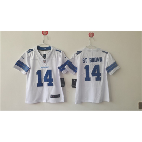 Women's Detroit Lions #14 Amon-Ra St. Brown White Stitched Jersey(Run Smaller)