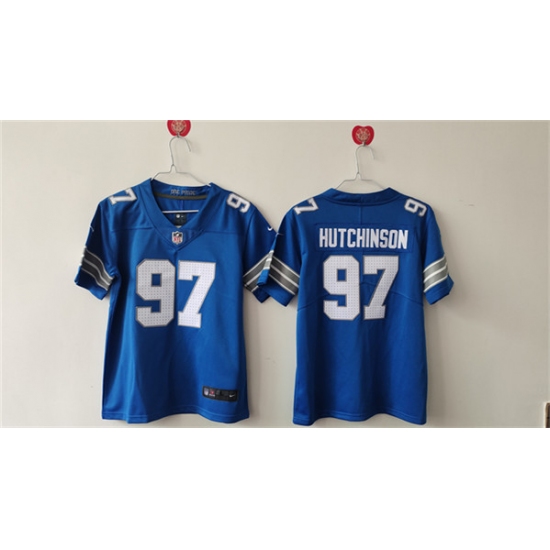 Women's Detroit Lions #97 Aidan Hutchinson Blue Stitched Jersey(Run Smaller)