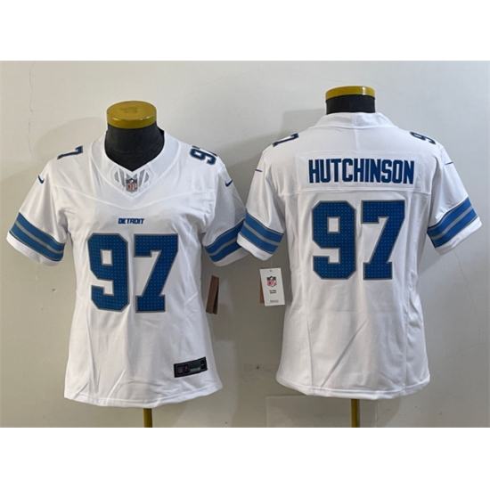 >Women's Detroit Lions #97 Aidan Hutchinson White 2024 F.U.S.E. Vapor Limited Football Stitched Jersey(Run Smaller)