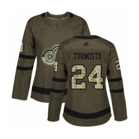 >Women's Detroit Red Wings #24 Antti Tuomisto Authentic Green Salute to Service Hockey Jersey