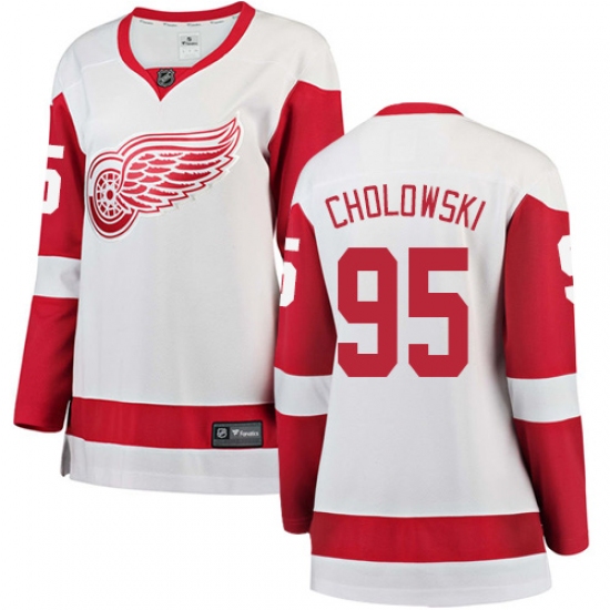 Home>NHL>Detroit Red Wings>Dennis Cholowski>Women's Detroit Red Wings #95 Dennis Cholowski Authentic White Away Fanatics Branded Breakaway NHL Jersey