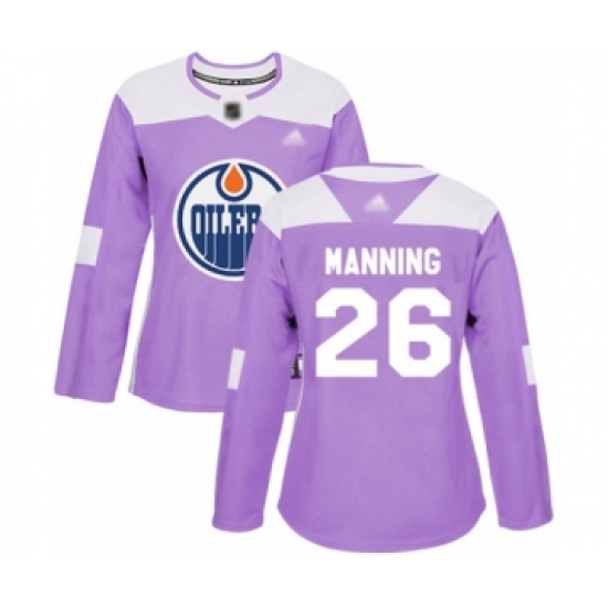 Women's Edmonton Oilers #26 Brandon Manning Authentic Purple Fights Cancer Practice Hockey Jersey