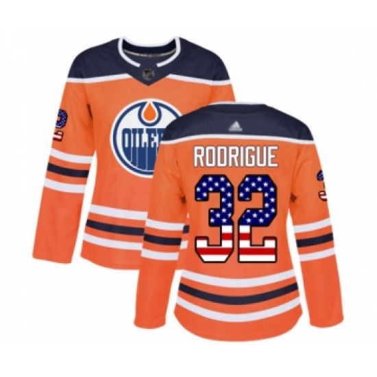 Women's Edmonton Oilers #32 Olivier Rodrigue Authentic Orange USA Flag Fashion Hockey Jersey