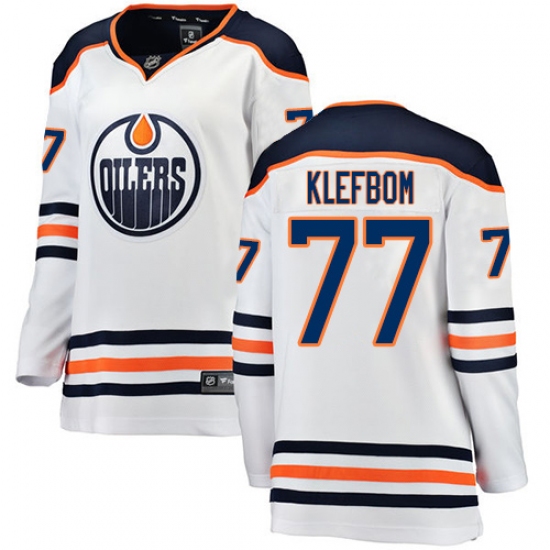 Home>NHL>Edmonton Oilers>Oscar Klefbom>Women's Edmonton Oilers #77 Oscar Klefbom Authentic White Away Fanatics Branded Breakaway NHL Jersey