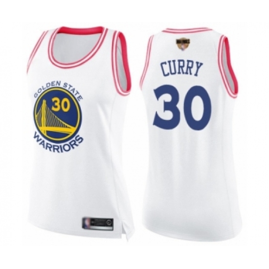 Women's Golden State Warriors #30 Stephen Curry Swingman White Pink Fashion 2019 Basketball Finals Bound Basketball Jersey