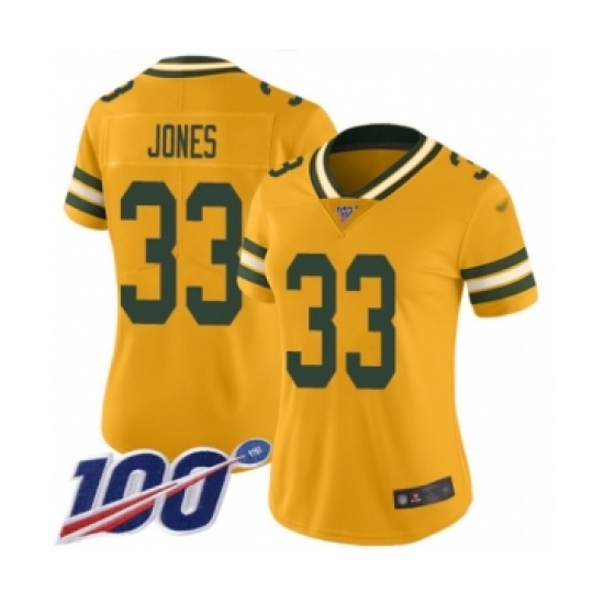 Women's Green Bay Packers #33 Aaron Jones Limited Gold Inverted Legend 100th Season Football Jersey