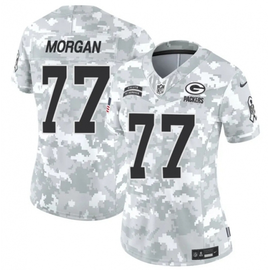 >Women's Green Bay Packers #77 Jordan Morgan 2024 F.U.S.E Arctic Camo Salute To Service Limited Stitched Football Jersey(Run Small)