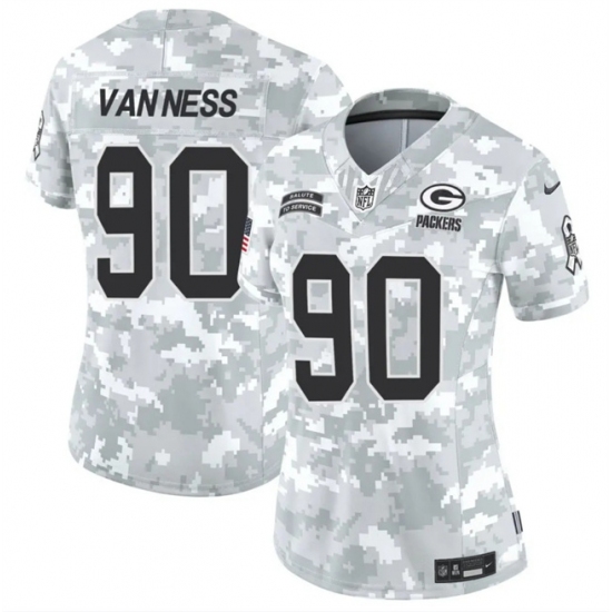 >Women's Green Bay Packers #90 Lukas Van Ness 2024 F.U.S.E Arctic Camo Salute To Service Limited Stitched Football Jersey(Run Small)